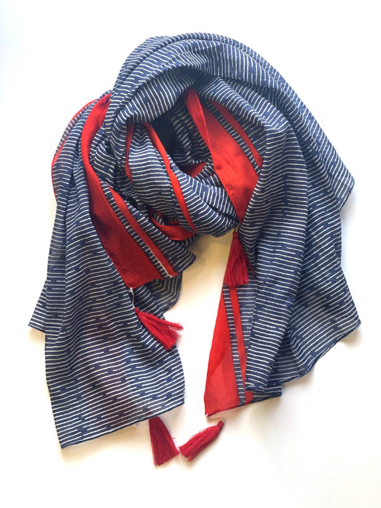 Sold outDel Sol Tassel Cotton Scarf- Navy