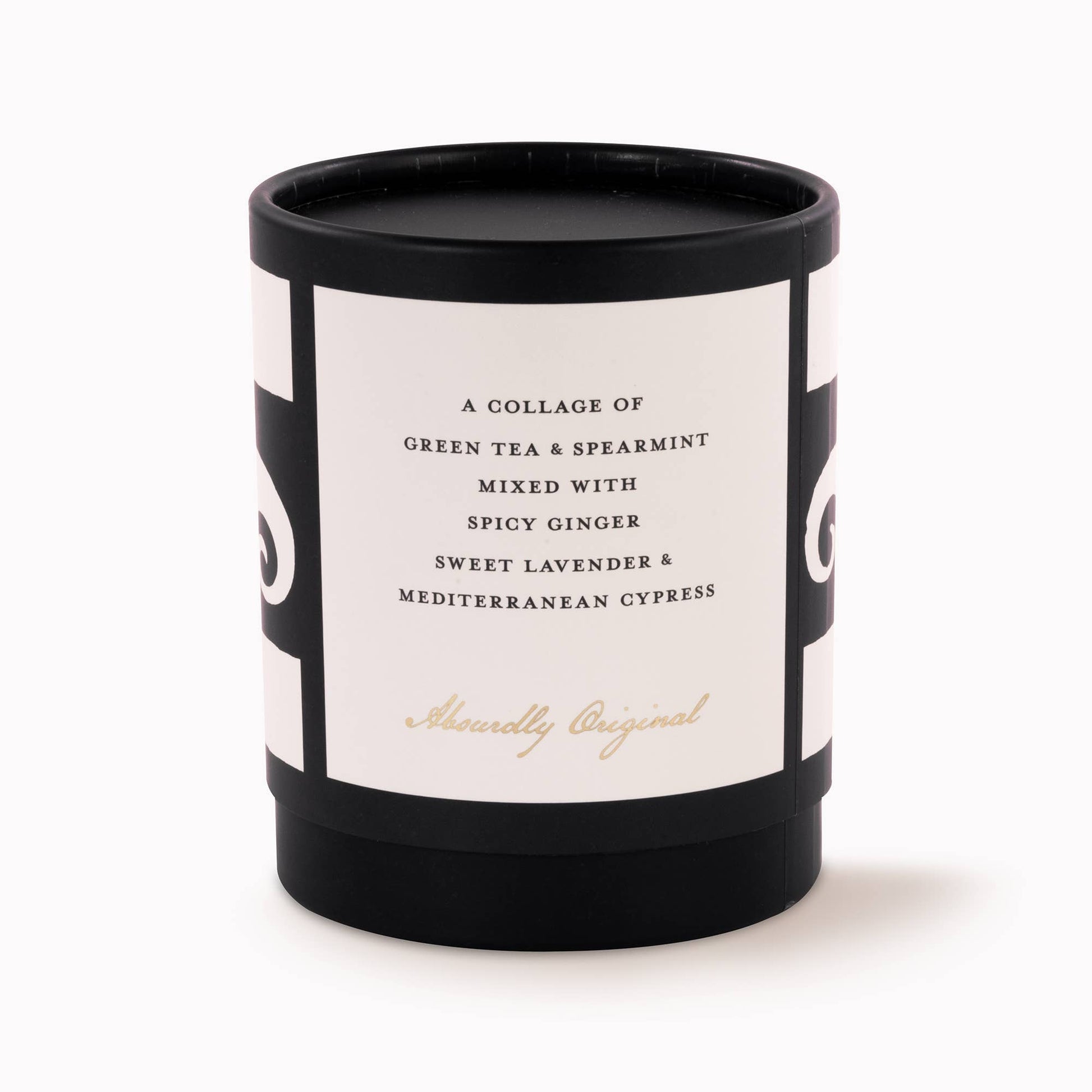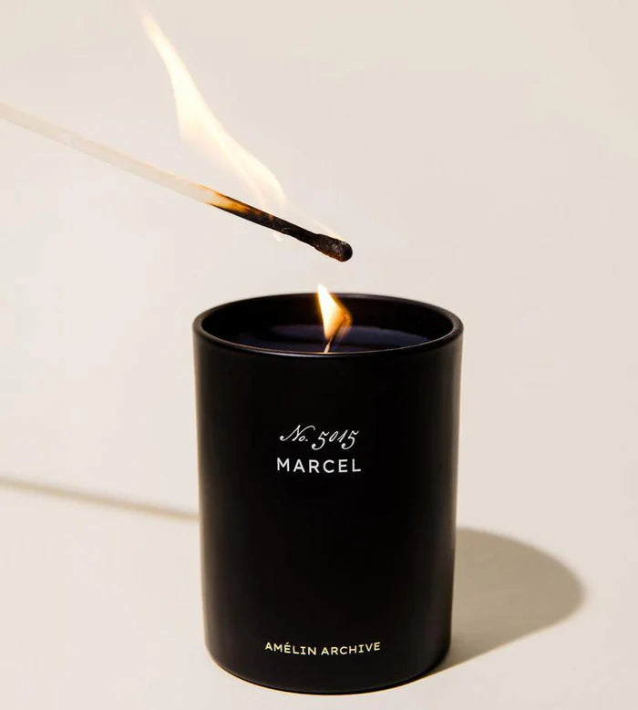 An absurdly original and invigorating collage of green tea and spearmint mixed with spicy ginger, sweet lavender, and Mediterranean Cypress. Our black wax candle is named after Marcel Duchamp, a DaDa artist who famously painted a mustache on a copy of the Mona Lisa. The distinctive 2 piece paper-wrapped presentation box is a readymade gift. The intentionally minimal black glass vessel is subtle enough to display in any home.